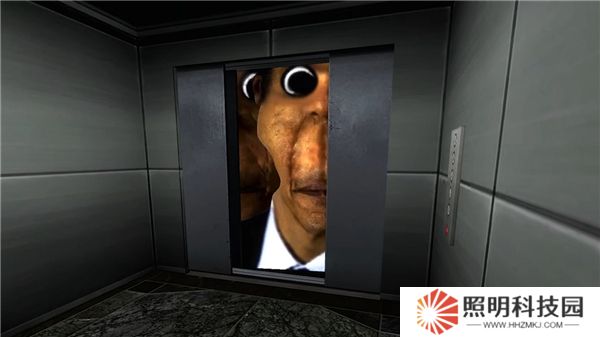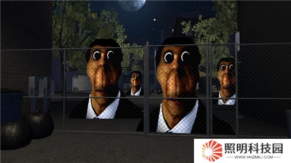 6、如果不小心被抓住則將被淘汰,在這里我們要做的就是使用場(chǎng)景中的各種物品進(jìn)行躲避,途中遇到奧巴嘎請(qǐng)趕快逃離,一但被逮住直接游戲結(jié)束。