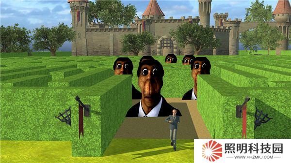 玩家來到一個(gè)草地迷宮,躲避奧巴嘎的同時(shí)尋找出口逃離迷宮。玩家可以利用梯子爬上迷宮的墻上,不要被歐巴嘎追上。
