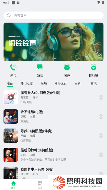 進(jìn)入app以后,就可以看到免費(fèi)鈴聲了
