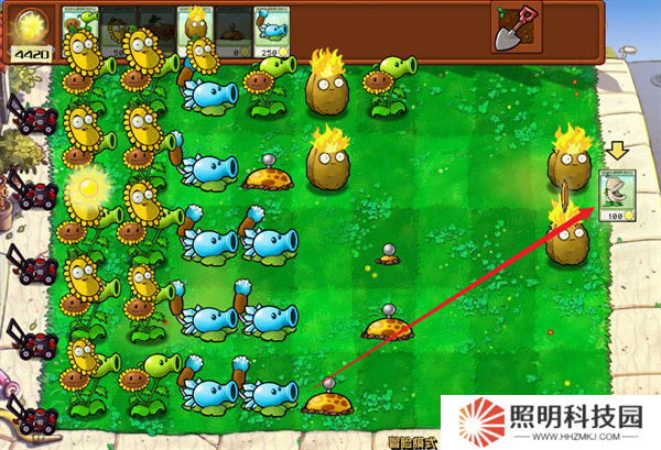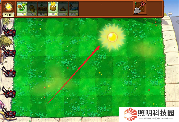 8、關卡內部會掉落陽光,拾取之后就能夠消耗陽關來進行植物的種植。