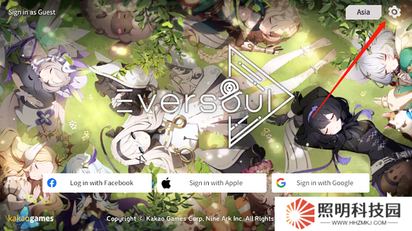 1、玩家們從本站下載安裝完成之后啟動游戲,在登錄界面點擊右上角的齒輪設置菜單按鈕。