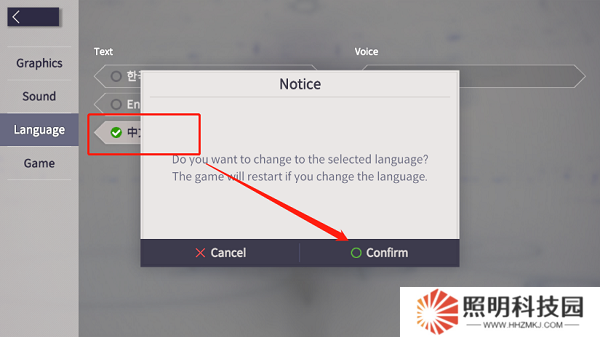 3、在語言選擇的界面點擊中文,并在彈窗里面點擊右下角的按鈕就能夠設置中文。
