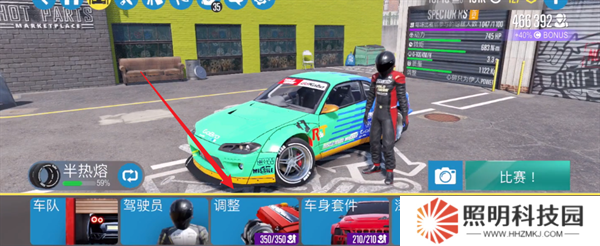3、其中需要對賽車的各種部件進行修改的話,你要點擊下方的調整模塊。
