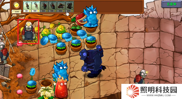 3、投籃僵尸就能夠將第三行的所有植物都消滅。