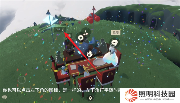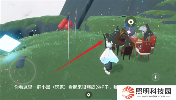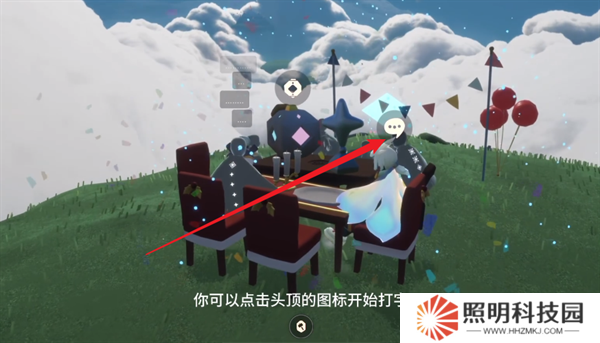 4、想要與陌生人聊天的話,就需要與他們共同坐在一張桌子上,在桌子前面點擊入座的交互鍵。