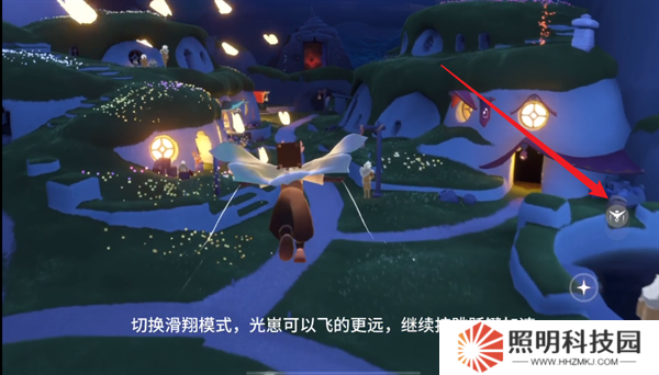 5、長按跳躍鍵之后,就能夠讓自己的角色跳躍到空中,點擊滑翔鍵就能夠開始進行滑行。