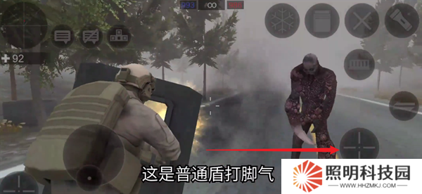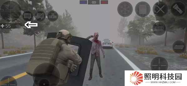 1、當(dāng)僵尸接近的時候,可以點擊右下角的攻擊按鍵來將僵尸擊退。