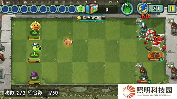 3、闖關(guān)的過(guò)程中玩家們可以靈活的運(yùn)用植物們的技能,幫助我們輕松順利的完成關(guān)卡通關(guān)。