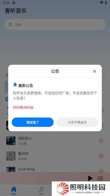 青聽音樂app安卓版使用教程:進入app以后,你就可以免費聽歌了