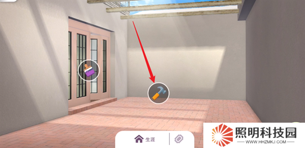 4、點擊地板上嗎的錘子圖標就能夠將這里的地板進行更換。