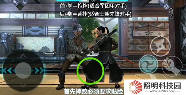 1、電腦對手適合使用摔跤的操作進行攻略,玩家們首先需要讓自己的角色接近對方的角色。