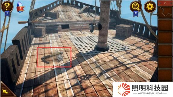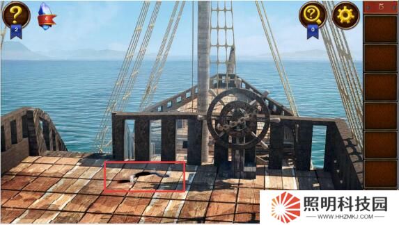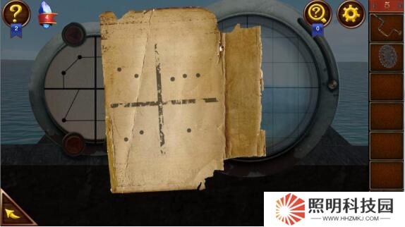 4、打開圖紙,去船頭的雷達(dá)上按照圖紙的提示,點擊獲得圖案提示,分別找出雷達(dá)上紅色點對應(yīng)的4個圖案,后面在舵盤上有用。