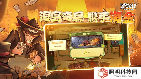 冒險公社手游四人聯(lián)機是一款海盜題材的卡牌策略博弈游戲,玩家們在游戲世界里面的身份會是一位海島,你將會前往各種海面上的島嶼尋找寶藏,行動的過程會以出牌的形式來進行表現(xiàn),你會需要使用各種不同類型的卡牌來幫