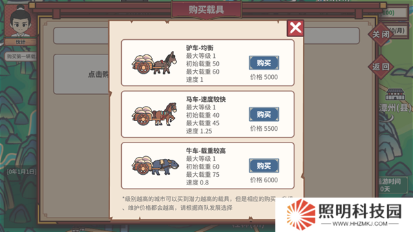 3、開始經(jīng)商的第一步就是購買載具,點(diǎn)擊下方的城市。