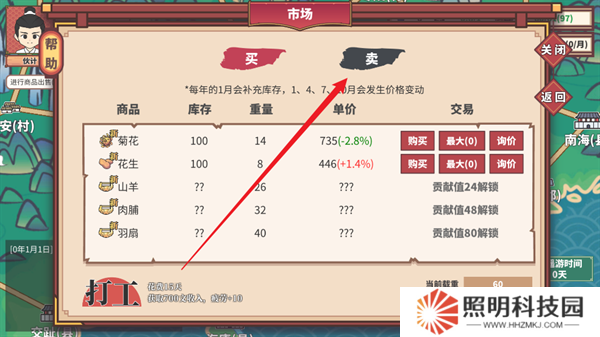 13、來到新的城市之后點(diǎn)擊城市界面的市場,再點(diǎn)擊其中的【賣】。