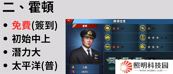 免費簽到可以獲得,初始屬性處在中上檔次,升級的潛力也很大,可以輕松打過太平洋戰役。