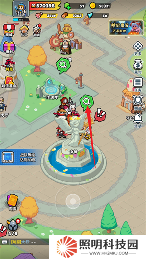 1、進(jìn)入到城鎮(zhèn)中后玩家們控制角色靠近女神像點(diǎn)擊放大鏡圖標(biāo)打開(kāi)。