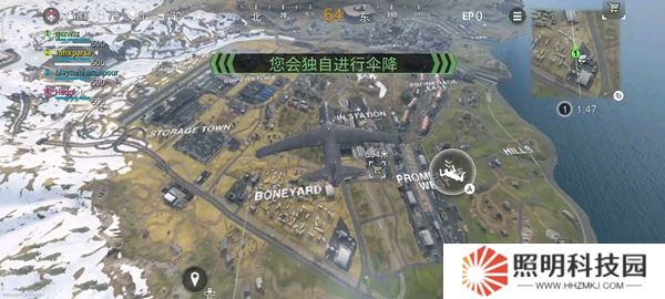 5、等待系統匹配玩家進入,這里以大逃殺模式為例,玩家開局會乘坐飛機,你可以選擇地圖上空跳傘。