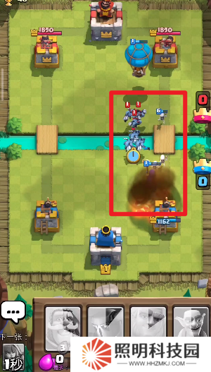 1、進入對戰地圖之后,雙方玩家們會各自擁有一個堡壘以及炮塔,你需要在這種情況之下召喚自己的**來進行戰斗。