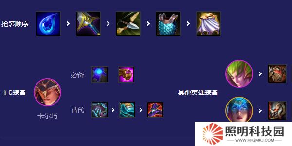 這個陣容非常缺人口,所以新人入隊和生日禮物提供的大量經濟獲得高人口,就是最佳選擇。同時扇子媽剛需藍BUFF這個裝備,所以給裝備的海克斯也是非常不錯的。