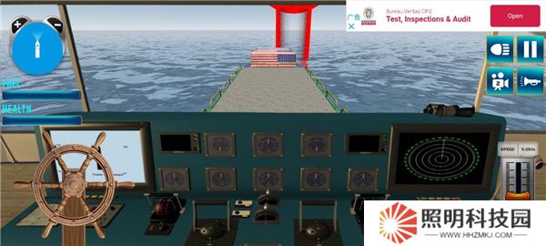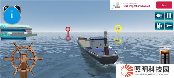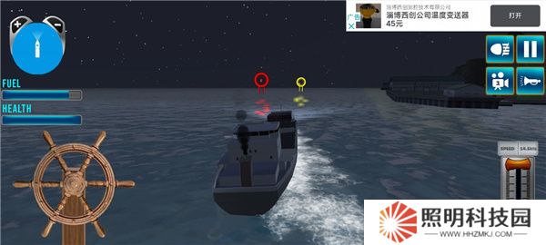 5、屏幕左上角顯示船只的燃料量,而右下角則用于控制船只的速度。