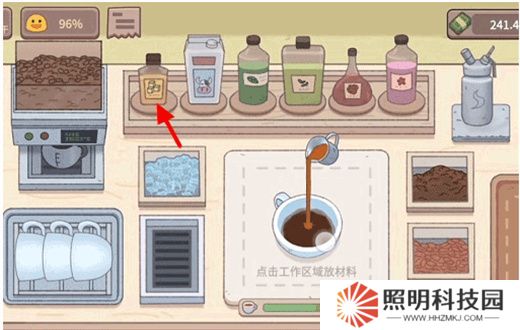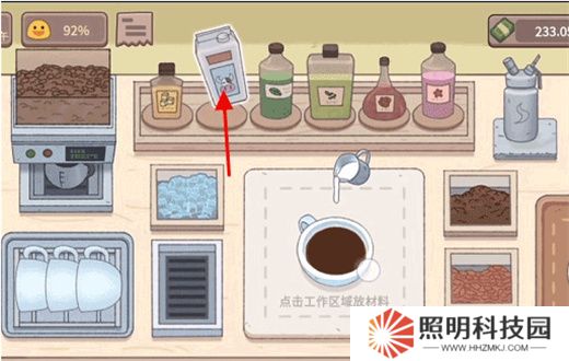 2、接著玩家們點擊牛奶倒入適量的牛奶到咖啡中。