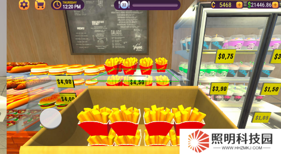 8、隨后將炸好的薯條放置到自己店鋪的貨架上。