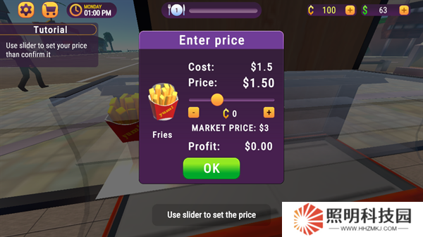 9、點擊標(biāo)牌設(shè)置薯條的價格。