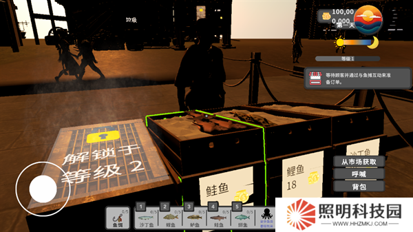 1.主要的玩法就是在自己的小攤上面進行魚類商品的出售經營活動,并以此來獲得資金。