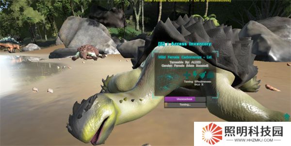 4、盡量將想要馴服的怪物帶到狹小的角落處馴服,這樣既不會被這條恐龍的同類攻擊也不會有其他的獵食者來阻礙馴服。