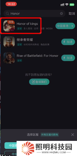 1、在本站下載安裝游戲,在準備好的加速器搜索游戲點擊選擇區(qū)服。