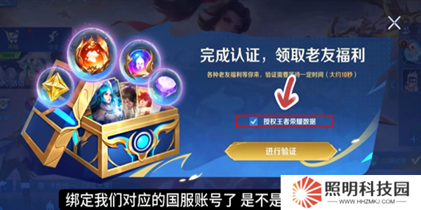 2、進入到游戲后,點擊勾選授權(quán)王者榮耀數(shù)據(jù),然后進行驗證。