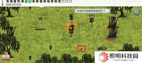 4、然后操控自己的角色撿起地上的石頭。