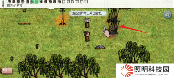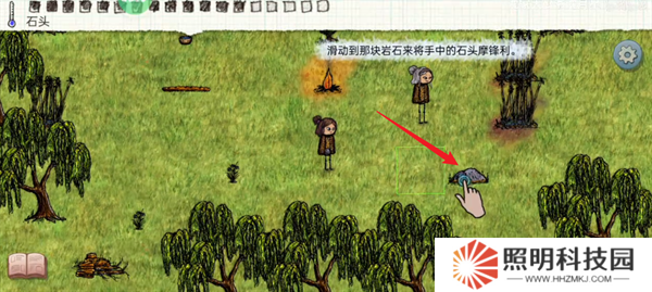 5、點(diǎn)擊巖石來(lái)進(jìn)行交互,將手中的石頭磨尖。