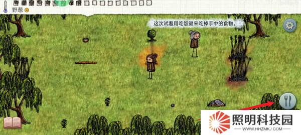 3、點(diǎn)擊右下角的吃飯按鍵,就能夠?qū)⒆约菏种械氖澄锍缘簟?/p>