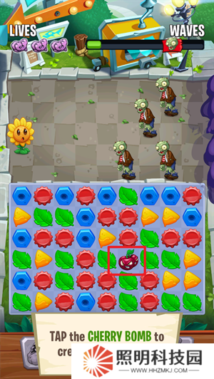 植物大戰僵尸匹配是一款玩法趣味十足的植物闖關游戲,玩家們將會進入到植物與僵尸的世界里面,并由此來和戴夫一起與僵尸之間進行作戰,主要的玩法就是三連的匹配消除,你需要在棋盤之中對里面的各種元素都進行移動的處理,當三個或以上數量的物品匹配搭配到一起之后,就能夠進行消除,四個物品的消除還將能夠制作出各種不同類型的植物,植物們都會具有自己獨特的能力,可以幫助你更好的進行消除的操作,輕松達成關卡目標。