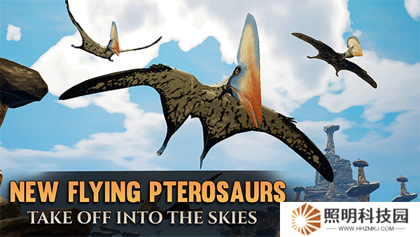 2.游戲的世界不僅有各種類型的恐龍,還有其他古生物如劍齒虎、翼龍等,要與它們爭奪地盤資源和食物。