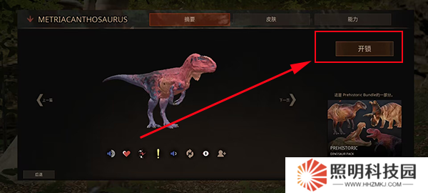 3、然后在恐龍界面的介紹面板中點擊右上角的開鎖即可。
