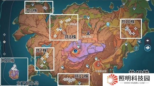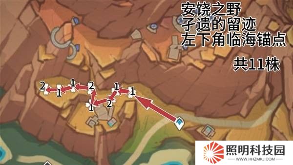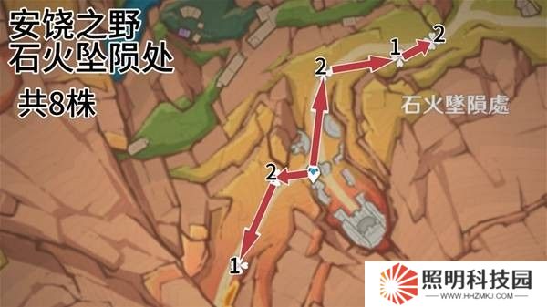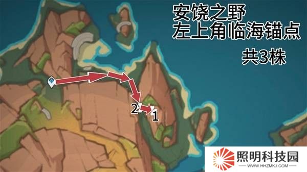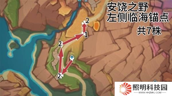 地圖左側臨海錨點,石火墜隕下方(7株)