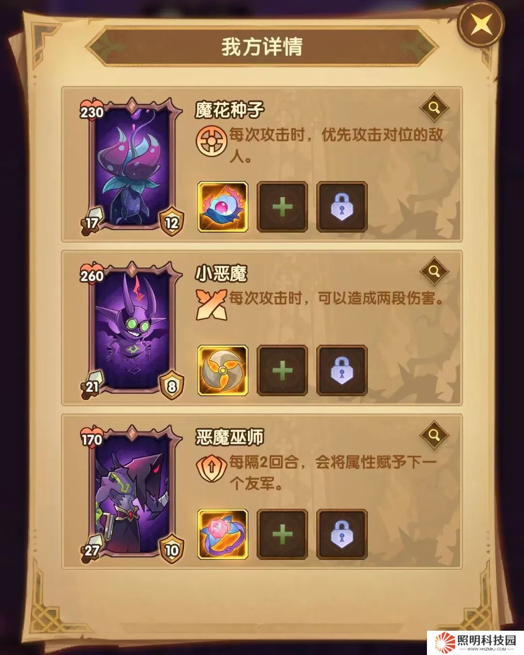 魔花種子1號位 惡魔巫師2號位 小惡魔3號位