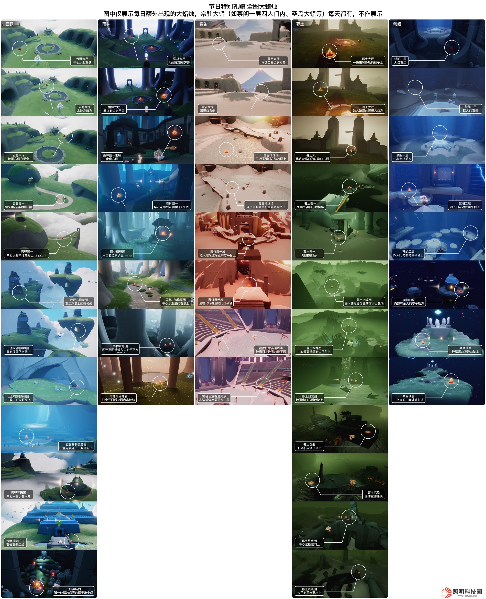 光遇今天的大蠟燭刷新在了云野雨林霞谷暮土禁閣這5張地圖,那么大家知道4.1每堆大蠟燭的具體位置在哪里嗎?下面為大家帶來光遇4月1日大蠟燭位置的具體內容,感興趣的玩家們千萬不要錯過哦!