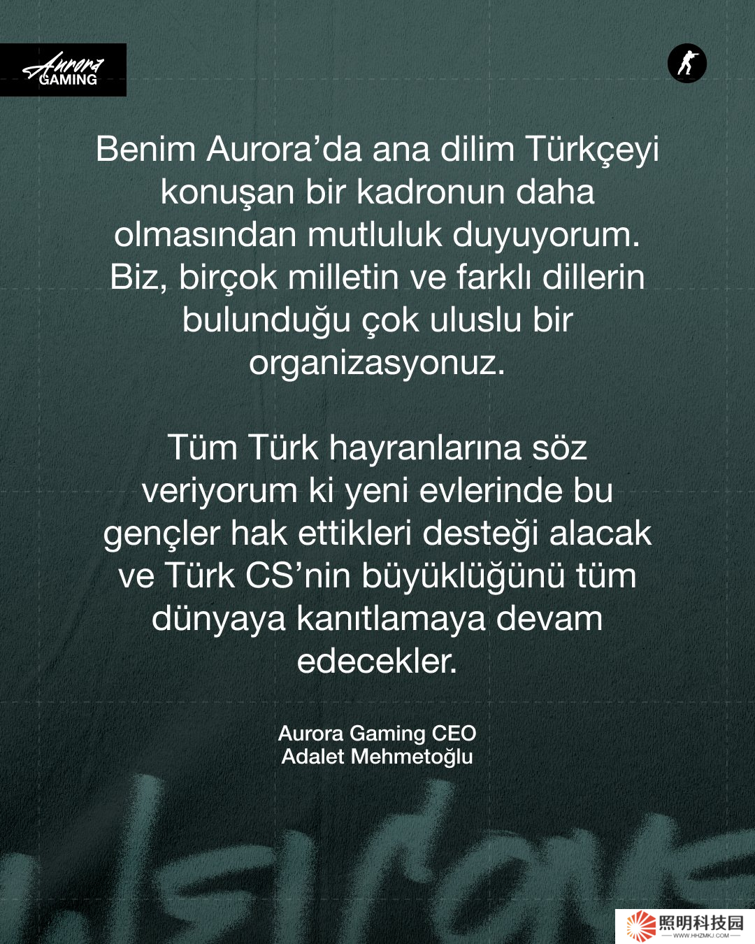 Aurora電子競技俱樂部土耳其籍首席執行官Adalet Mehmeto?lu通過俱樂部官方賬號向公眾及粉絲致歡迎辭。
