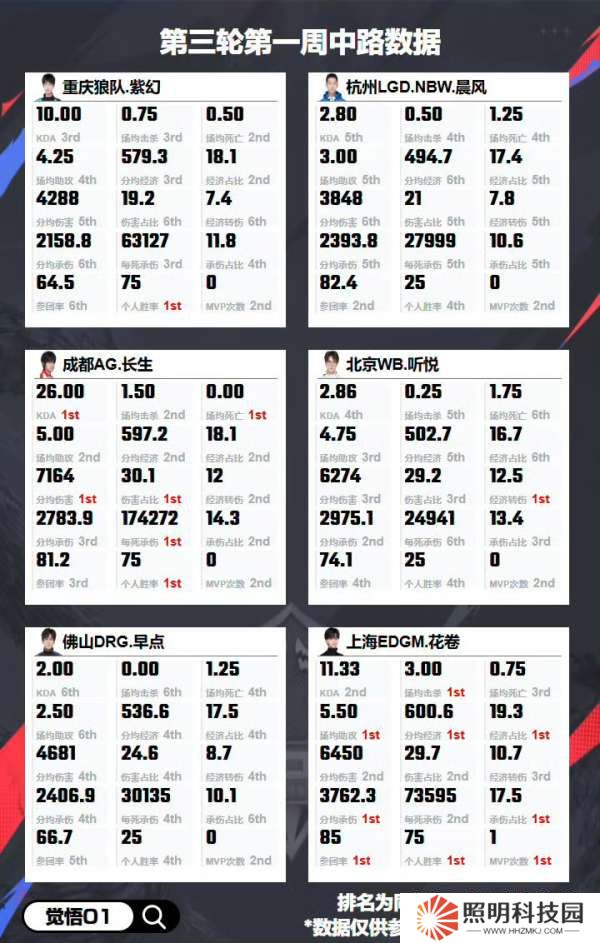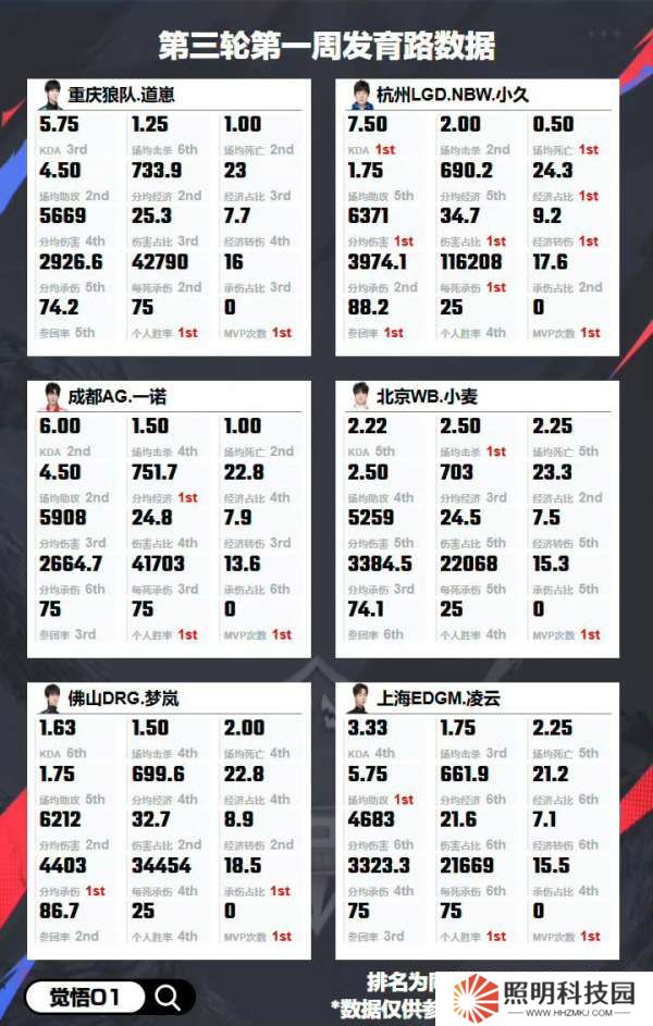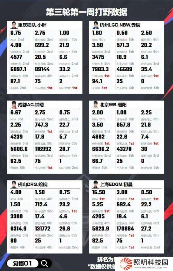 首頁 > 游戲資訊 >第三輪各位置數據:歸期十項數據第一,花卷九項數據第一