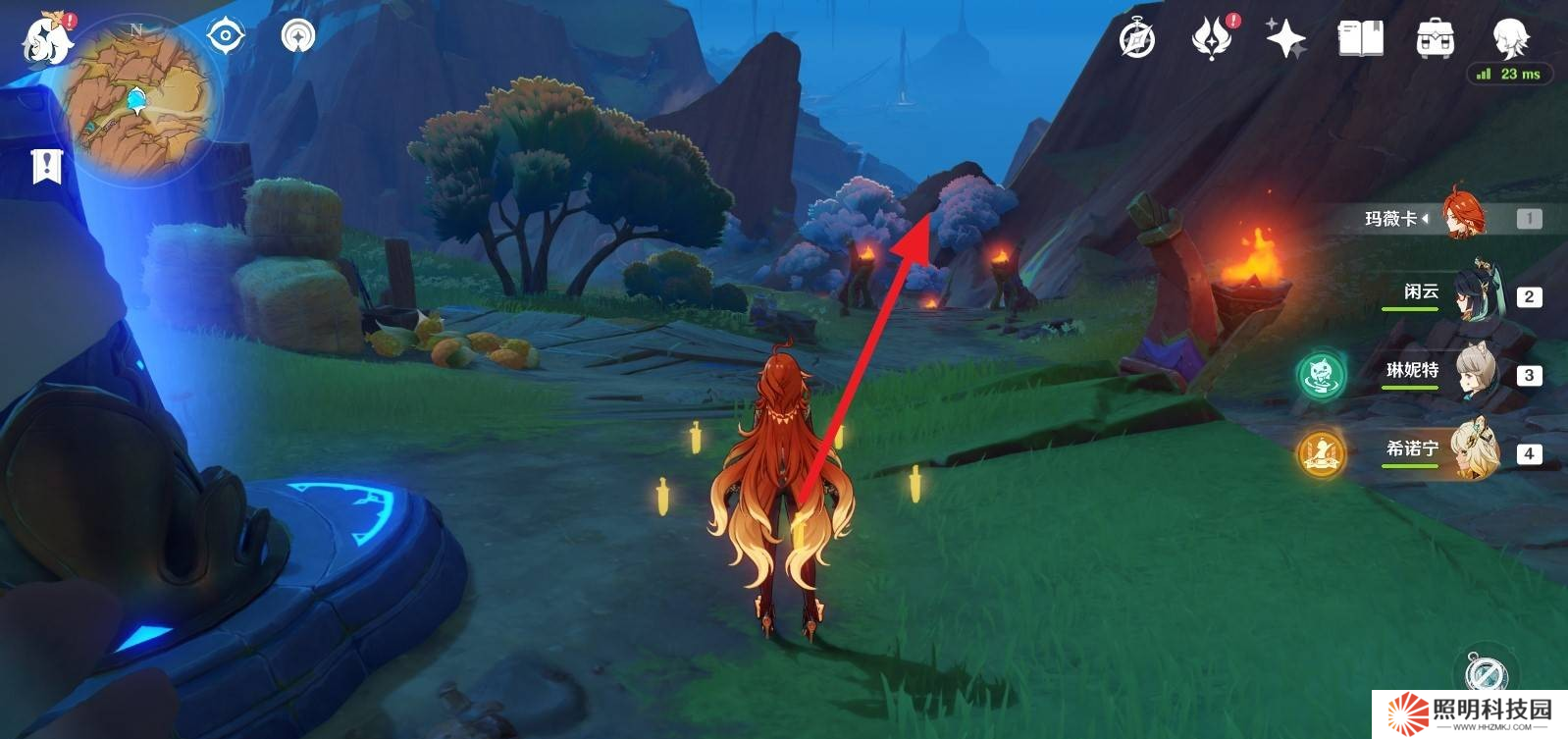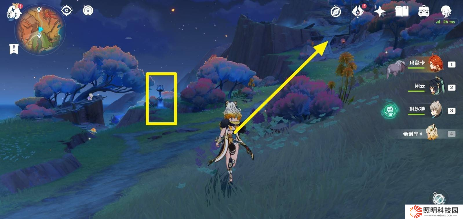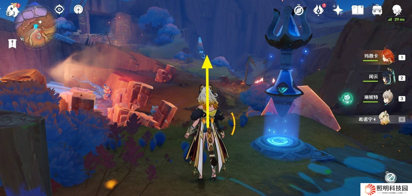 4、穿過石頭障礙后,繼續沿主路走,在右側可以看到一個新的傳送錨點,靠近后激活它。