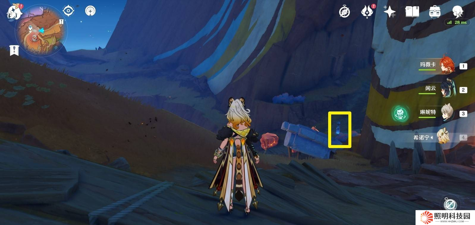 5、站在錨點處,往南方向(小地圖下方)看,會發現一座高山中間有一個縫隙。