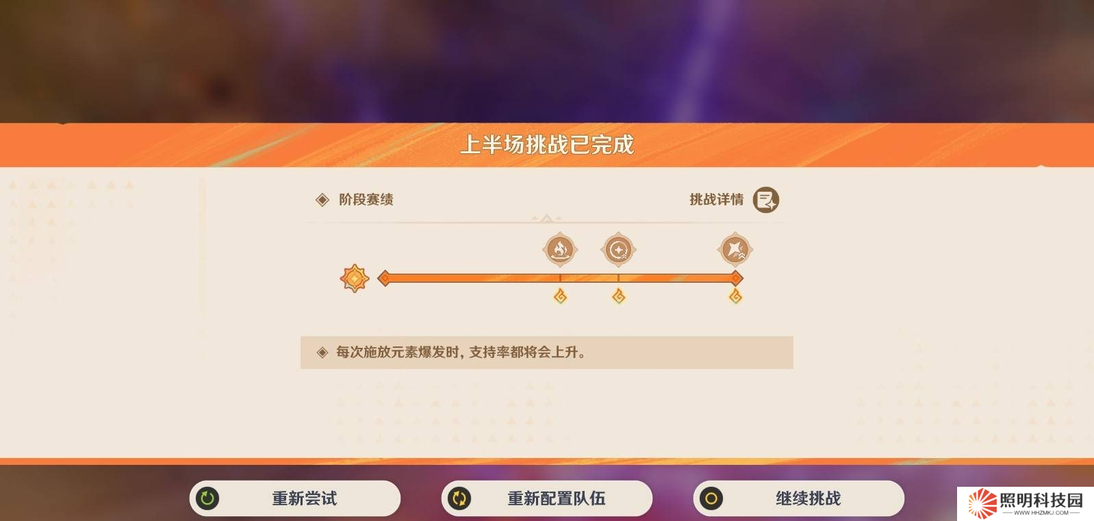 溫馨提示:支持率打不滿可以隨時重試上半場,不影響下半挑戰(zhàn)!