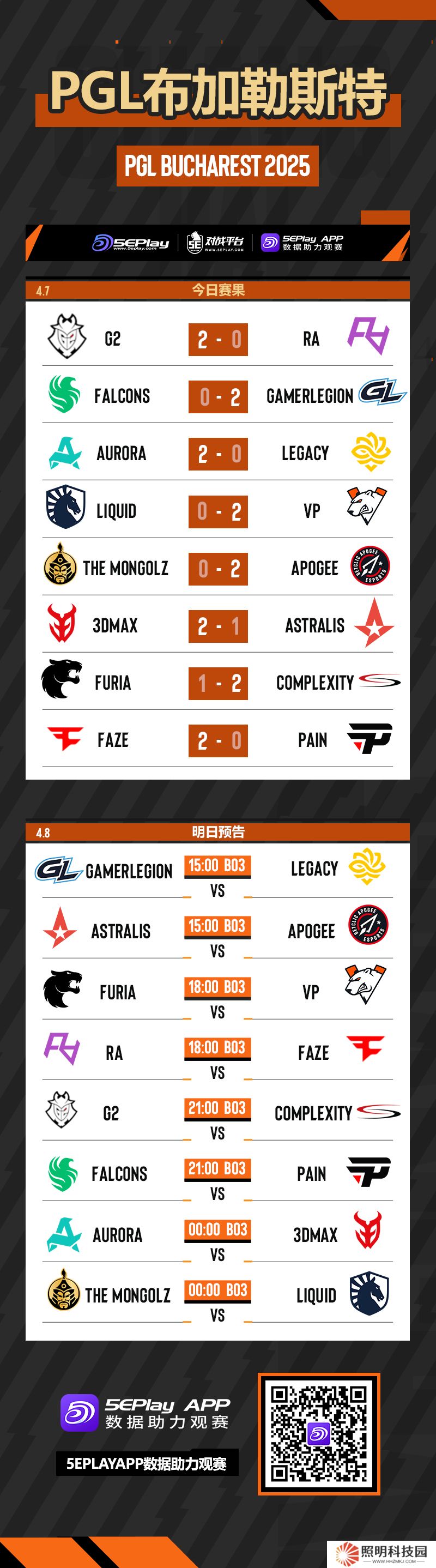明日RA將迎戰FaZe、G2將對陣COL,晚些還有Falcons、The MongolZ等隊的比賽,敬請收看。