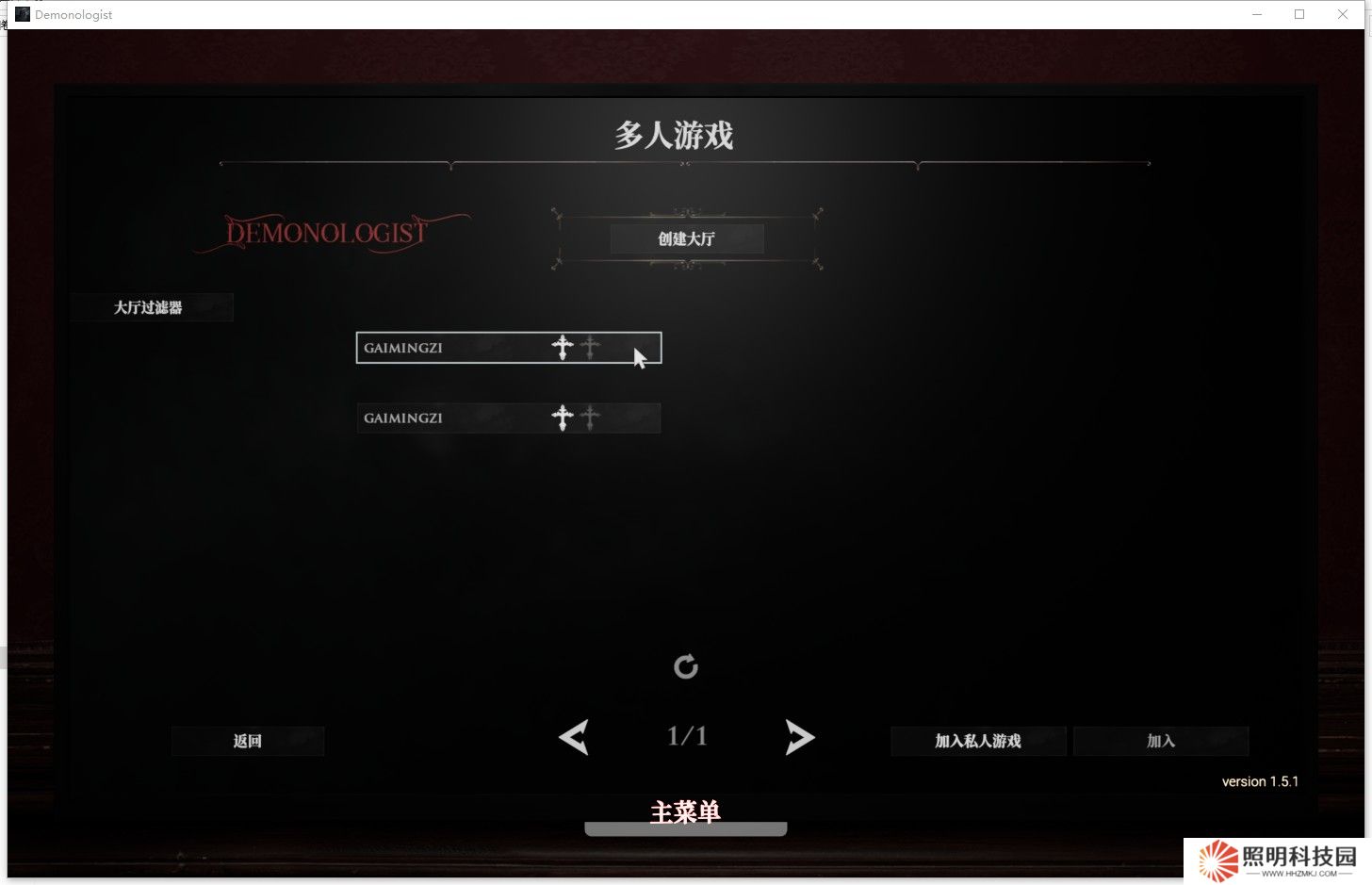 1:通過游俠對戰平臺《Demonologist/惡魔學家》房間進入游戲。