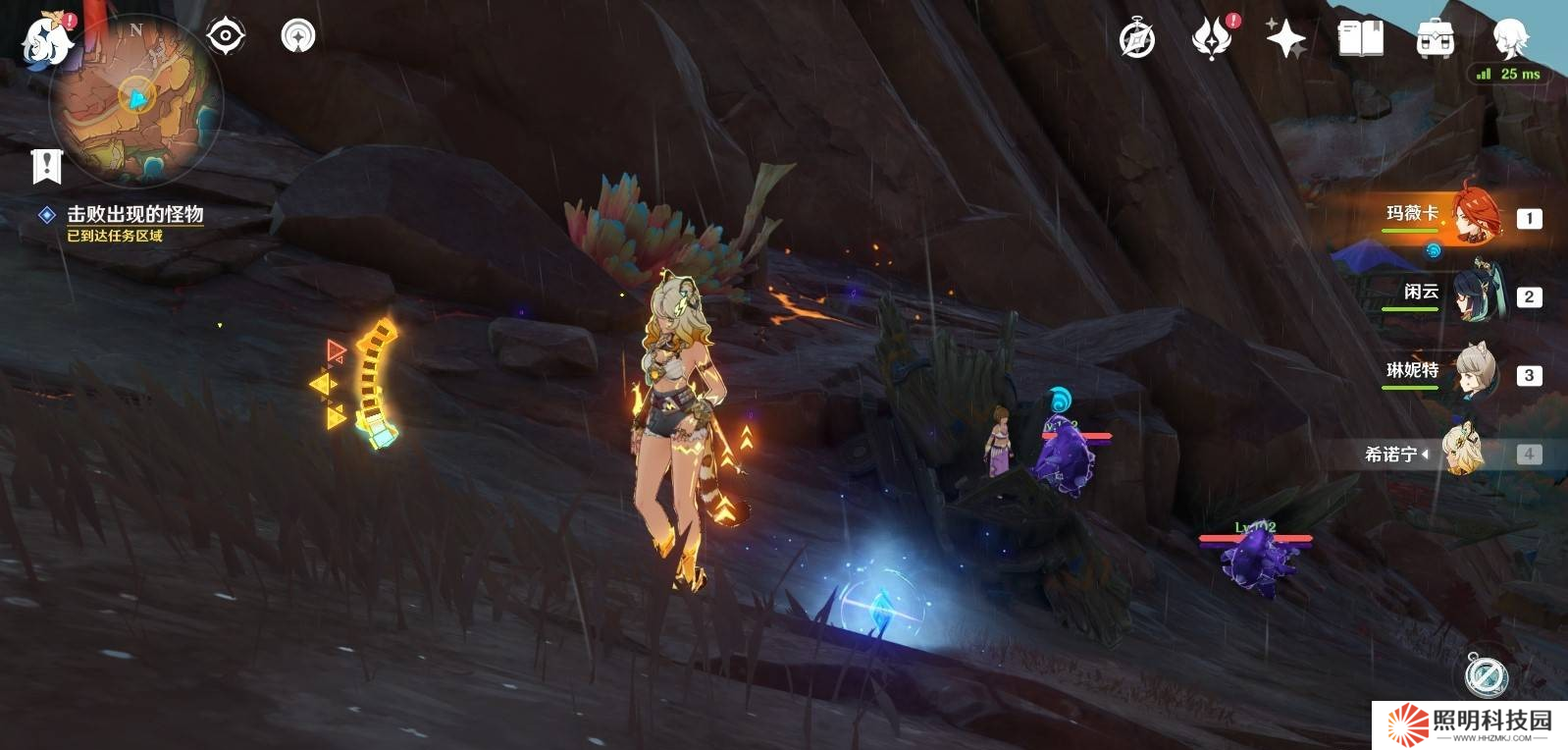 3、第二波:出現幾只丘丘人,數量較多,但整體威脅不大。建議使用范圍攻擊快速清理,比如雷系角色(雷電將軍、八重神子)或火系角色(迪盧克、可莉等)能更高效地清場。