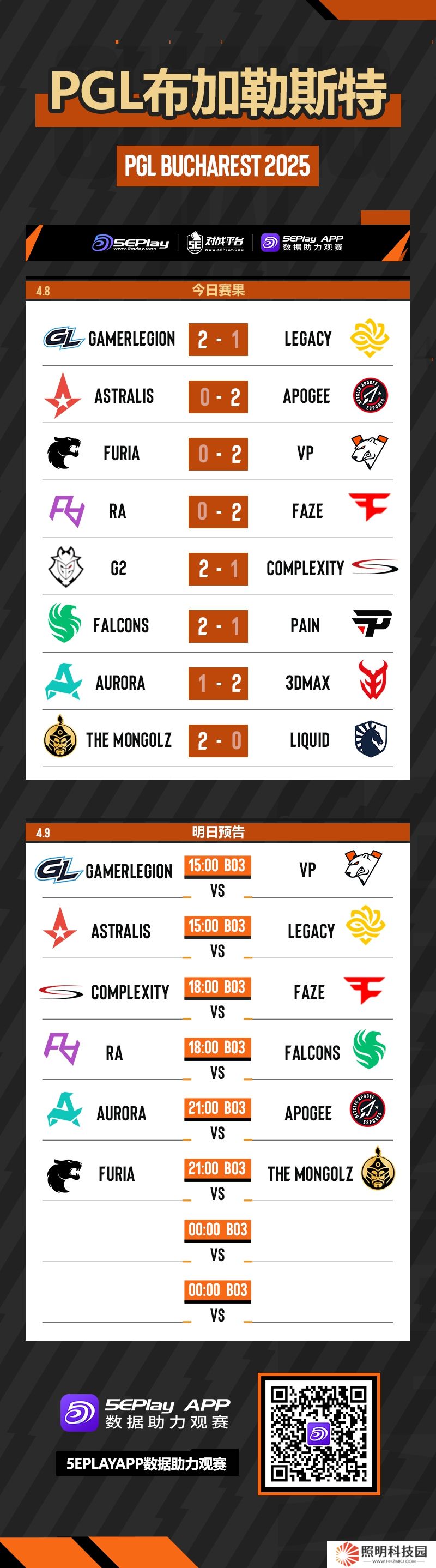 明日FaZe將迎戰COL、RA將對陣Falcons,另外還有Astralis、The MongolZ等隊的比賽,敬請期待。